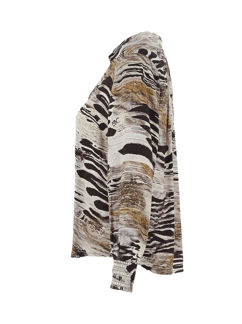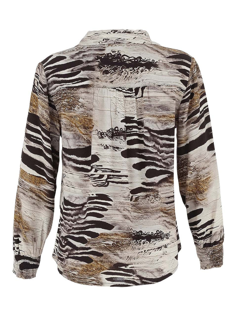 Elevate your style with the Dolcezza Viscose Artist Print Shirred Cuff Shirt.