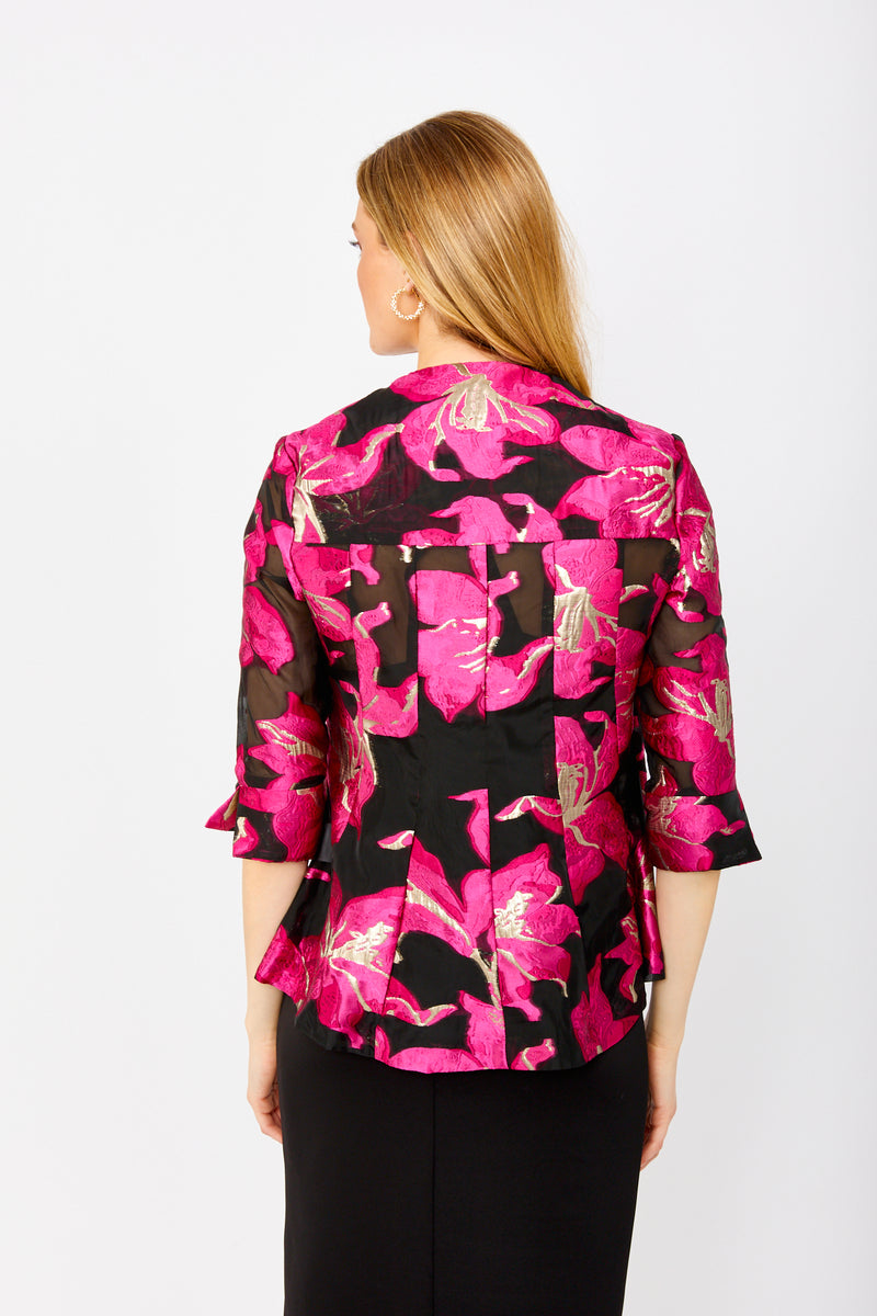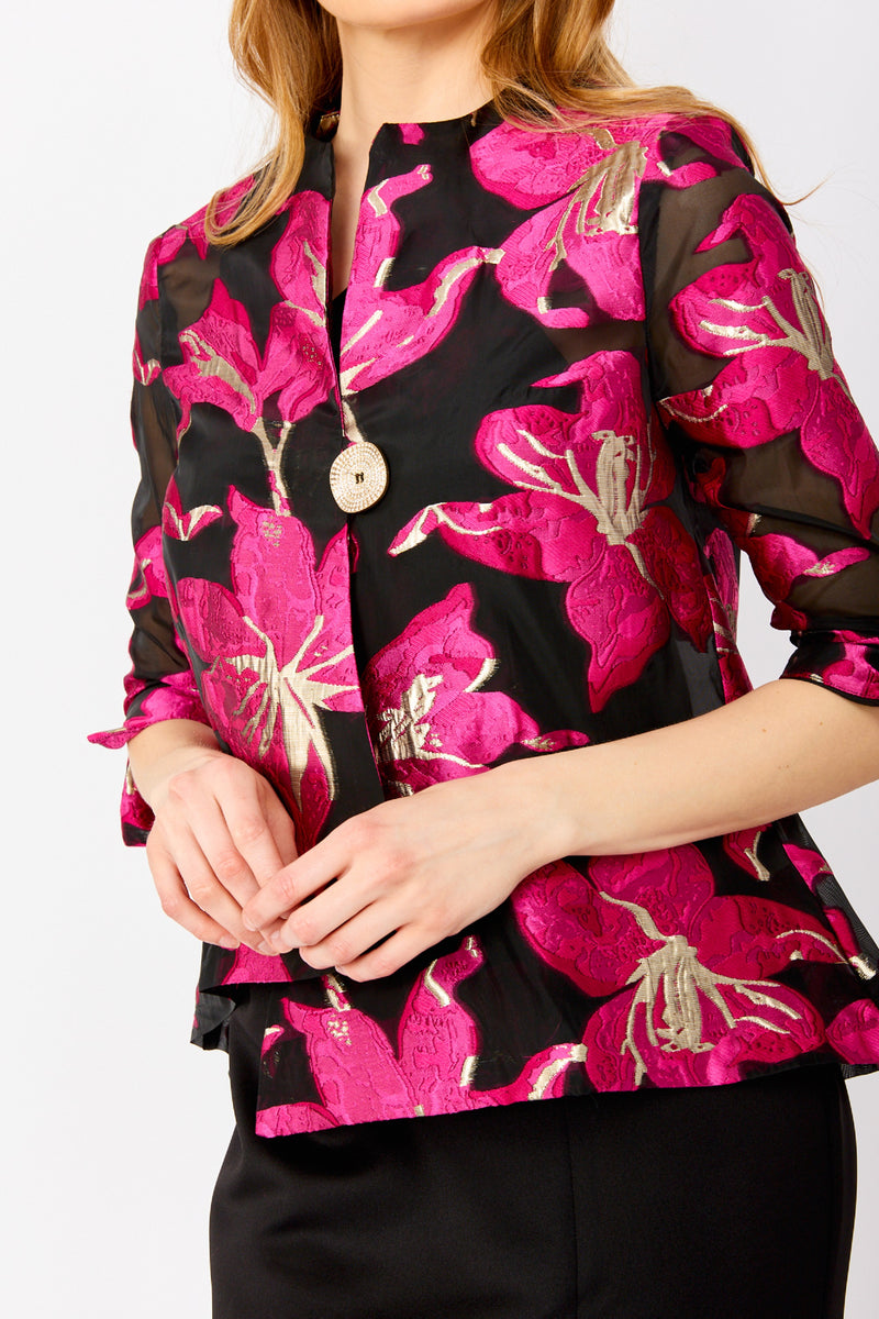 Elevate your wardrobe with this stylish and versatile hip-length top from Frank Lyman. Featuring a mandarin collar and button closure, this top is perfect for any occasion, from formal to semi-formal. The feminine floral pattern and three-quarter sleeve make it a fashionable choice for everyday overclothes. Add a touch of elegance to your look with this regular fit top.