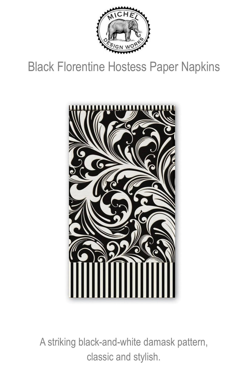 Everyone will delight in Michel Design Works Black Florentine Hosgtess Paper Napkins. Whether you are attending a picnic, or hosting a dinner party, these gorgeous Paper Napkins have something to offer. It comes in several sophisticated designs and is a soft, triple-ply paper for easy care. In addition, it is a great feature that coordinates with the tea towels and foaming hand soaps. It also makes a great gift, perfect all year round.
