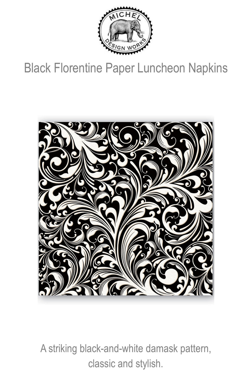 Everyone will delight in Michel Design Works Black Florentine Paper Napkins. Whether you are attending a picnic, or hosting a dinner party, these gorgeous Paper Napkins have something to offer. It comes in several sophisticated designs and is a soft, triple-ply paper for easy care. In addition, it is a great feature that coordinates with the tea towels and foaming hand soaps. It also makes a great gift, perfect all year round.