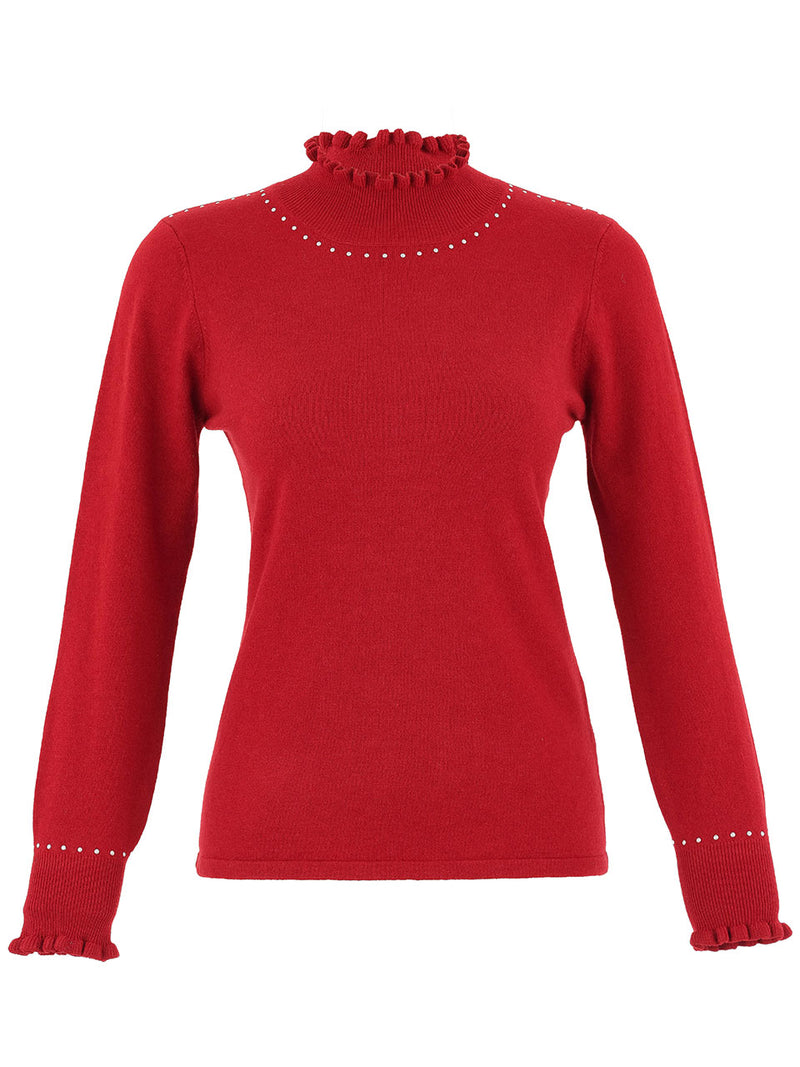 D75309 RED Ruffle Polo Knit Jumper With Hot-Fix